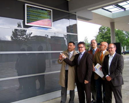 Das obigen Bild entstand bei der Einweihung der Fahrgastinformationstafel in Spaichingen (Kreis Tuttlingen) durch den Landrat und den Bürgermeister der Stadt.